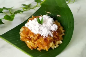 Sawut merupakan jajanan tradisional yang terbuat dari parutan singkong yang di campur gula merah dan sedikit garam lalu di kukus hingga matang. Di saji kan dengan di taburin kelapa parut.